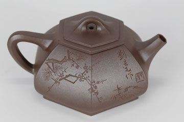 原矿真紫砂壶,精光内敛,温润似玉、如君子、色相沉稳、老气十足。好的紫砂矿料使用起来,不出15天便能看出效果。而不好的的化工泥壶,无论怎么养都白扯。就算也能做出豆沙效果(也并不是所有的矿料都有绿豆砂的效果),但因为表面的玻璃相(即加入刨花水的原故亦称石英水)太重,茶水吃不进,把玩的油脂也渗不进去,故这样的壶是养不出来的。现在有紫砂研究所已留意这个题目,已出产出表面不带玻璃相的化工泥,这类泥被用来做高档的仿名家壶,非常能欺骗人,没有将原矿泥与化工泥对比熟悉的,极轻易上当。