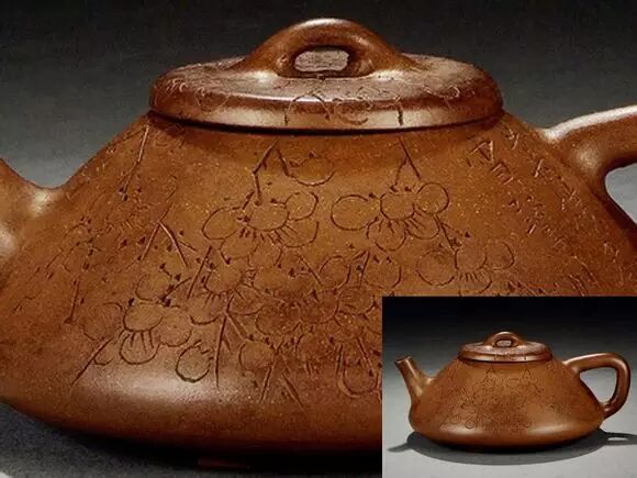 到了清代泥料澄炼工艺总体有所提高,出现了紫砂细泥而清代的泥色则较多,除了以上之外,还多见一种在紫砂泥中夹有梨皮似小点的紫砂,称为梨花点或桂花沙,前者较后者粗,也有人将它们统称为梨皮,梨花点清代早期多见,而桂花沙,则在雍正,乾隆时期多见。出窑之土质虽然干粗无光泽,一旦以茶养之,必然变化迅速,明显地由粗涩变成光和不炫的细腻质感,此点是明末清初紫砂胎土的特色。