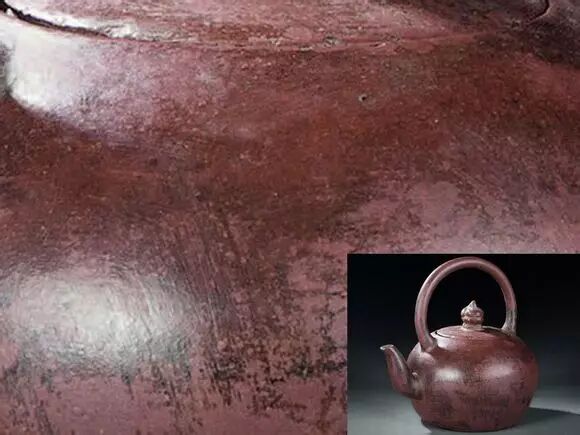 明代时期紫砂壶使用的泥料含颗粒状粗砂,给人的感觉是粗糙的,泥料的目数为25-30目,这是当时的炼泥陶洗技术相对落后的原因,目数越低,颗粒越粗,孔隙度也越大。