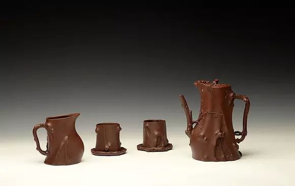 紫砂花器最早有记录的便是明代供春所制树瘿壶,当时的文人认为“极丑”就是“极美”,供春的这把树瘿便是极美的代表。树瘿壶的出现也标志着紫砂与大自然结下了不解之缘,而这自然也就形成了独特的紫砂花货艺术,历代的老师将更多的民族艺术与传统工艺融合到花货艺术中。
