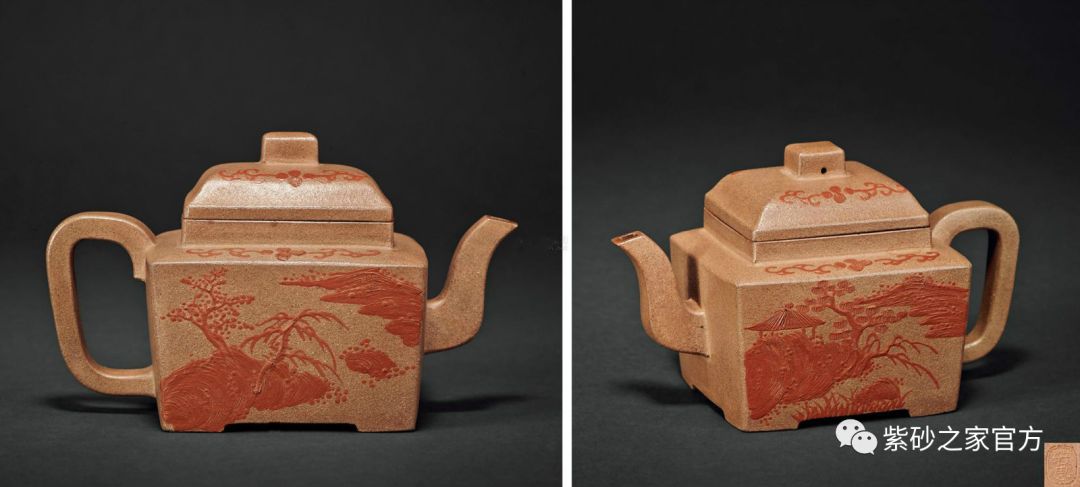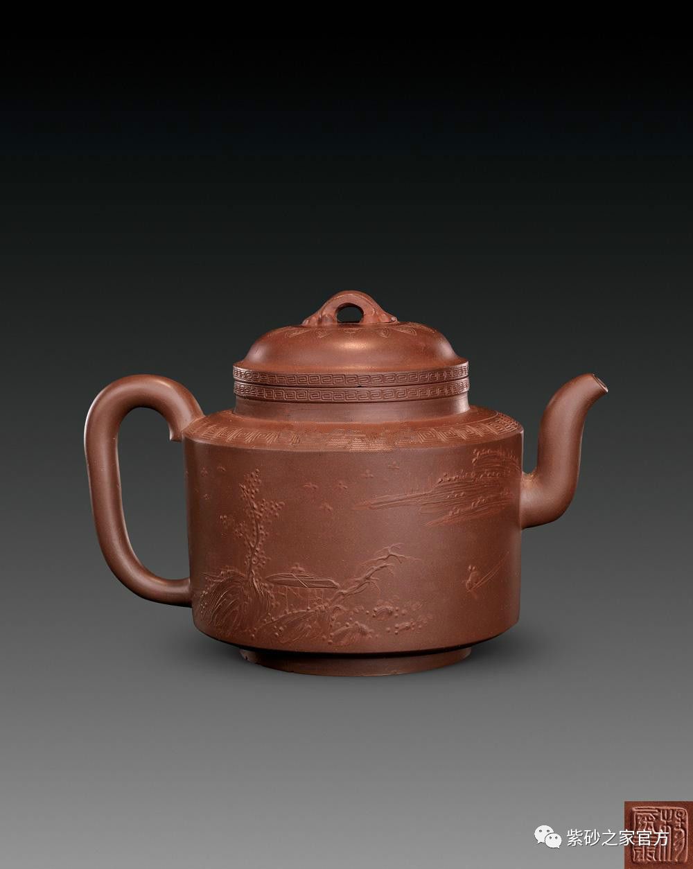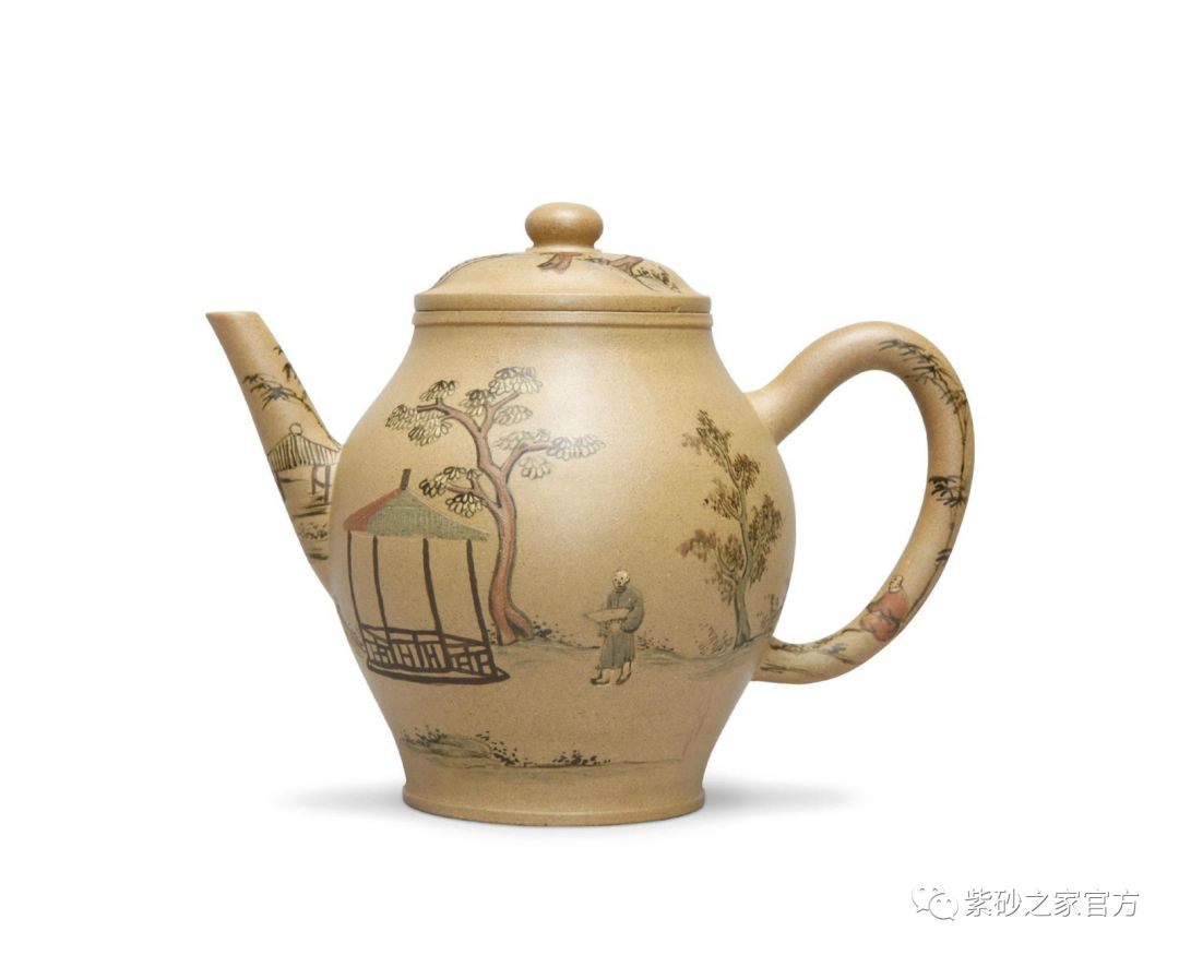 紫砂泥绘是在紫砂泥坯还未完全干透的程度上用泥浆堆画的形式,在壶身上作画,因其泥堆画的厚度又状似浮雕,又是堆塑结合的一种装饰手段,这种装饰艺术极具审美价值,所以作品也屡屡刷新拍卖纪录。