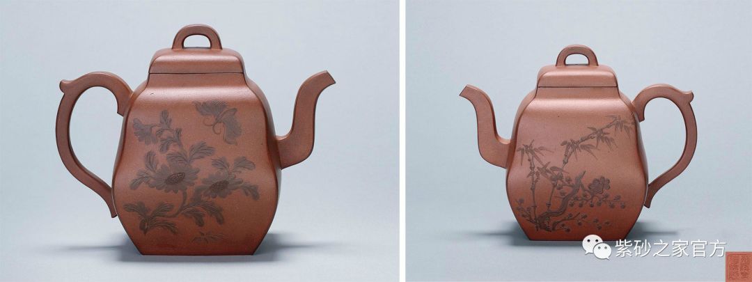 宜兴紫砂壶艺,包容天地广宽。既是得天独厚的紫砂造就,又是由其自身规律和文化氛围所决定。紫砂泥绘的风格,则更多的体现了作者内心世界的艺术形式,显示出别样的韵味。这韵味在于既可以满足素心素面的喜好,也可以满足有人喜欢紫砂略施粉黛的精彩,各其所好,甚为妙哉!