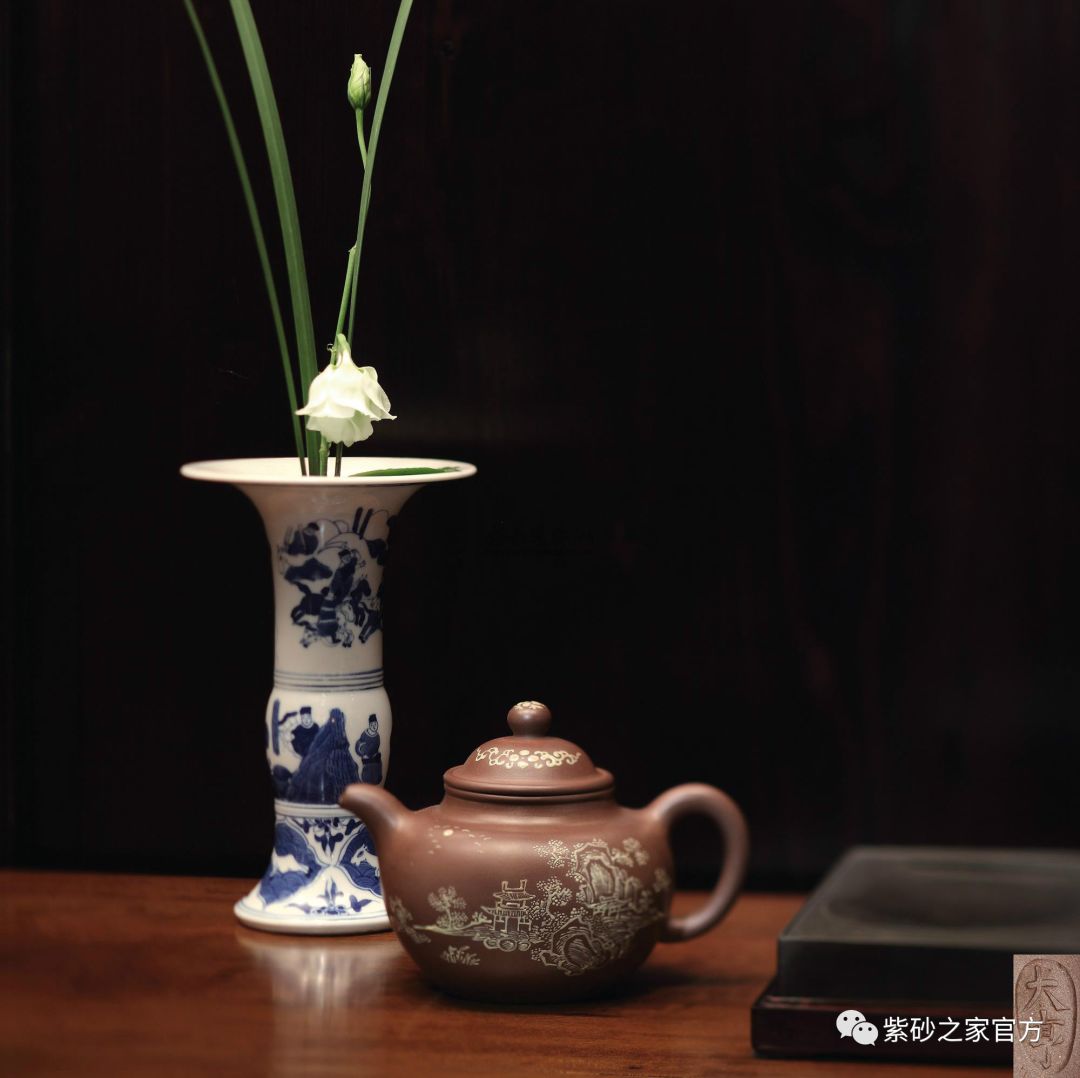 这里望得见亭台楼阁,山川河流,望得见呦呦鹿鸣,文史典故。紫砂泥绘,始于明末清初,盛于乾隆后期,集造型艺术和装饰艺术于一身,用泥浆将花鸟、山水或图案纹样展现在紫砂工艺品上,运用诗画艺术结合文化与其交流,形成独有的紫砂陶艺术。