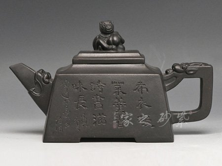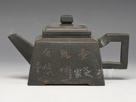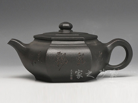 精选百目底槽清制作而成,色泽古朴,整壶线条流畅,充满曲折刚劲的张力。此外壶身刻绘“半日读书,半日静坐;一亩种菜,一亩种花”韵味十足。