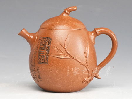 特点:原矿因含缎泥、红泥、紫泥等诸多共生矿,陶之后,于深沉之“橙红色”底上,满佈五彩斑斓的粗细、深浅之红、黄星斑点。