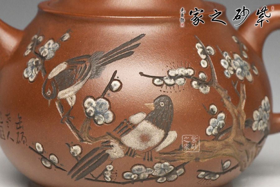 他的创作领域极为广泛,无论是紫砂光素的圆形器、方形器,还是仿自然形的花货器型类,甚至是陶刻工艺,他都能信手拈来、游刃有余。对于砂壶各家流派的独特风格,以及印款和陶刻等细节之处,他更是有着深入的理解和精准的把握。