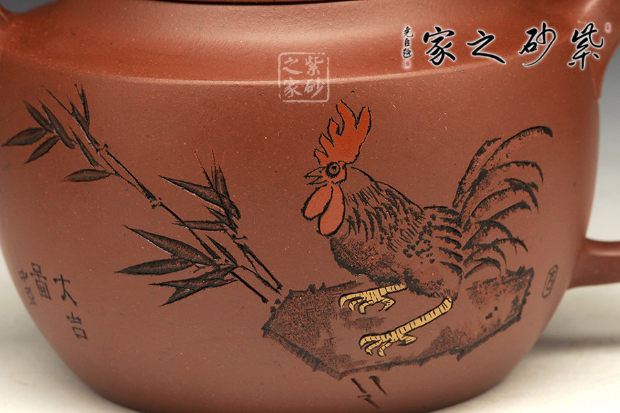 特点:块状中有青绿色的"鸡眼"、"猫眼"、色呈偏紫泛青,细而纯正, 十分稀少.烧成的壶呈现 红猪肝色,烧成颜色具体要看矿料的成分构成和烧成温度。