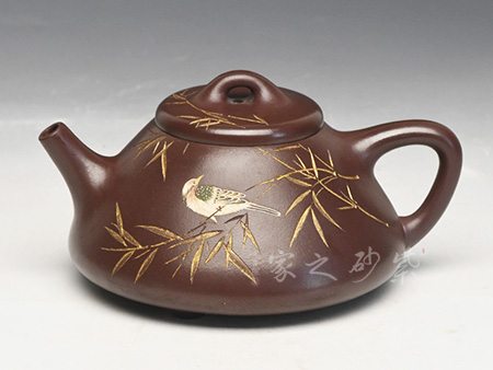 2001年与沈蘧华合作的“仿宋提梁壶”获杭州西湖博览会第二届中国工艺美术大师作品展银奖