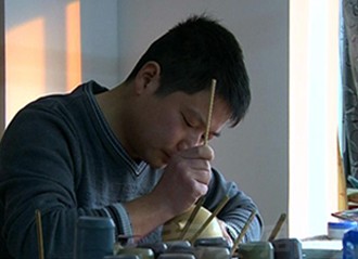 简上杰说,紫砂石运用大陆宜兴特有的陶土制成,透气性良好,泡茶时,茶香容易散发,茶水细腻,壶面越泡越光滑,让人感觉有宝光覆盖,祥和又具有骨董的优雅,让人越看越喜爱。