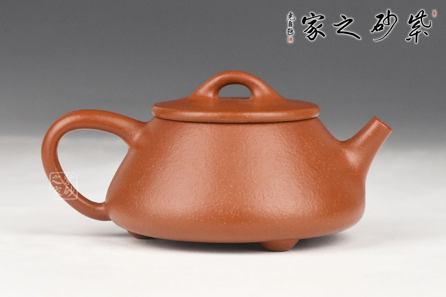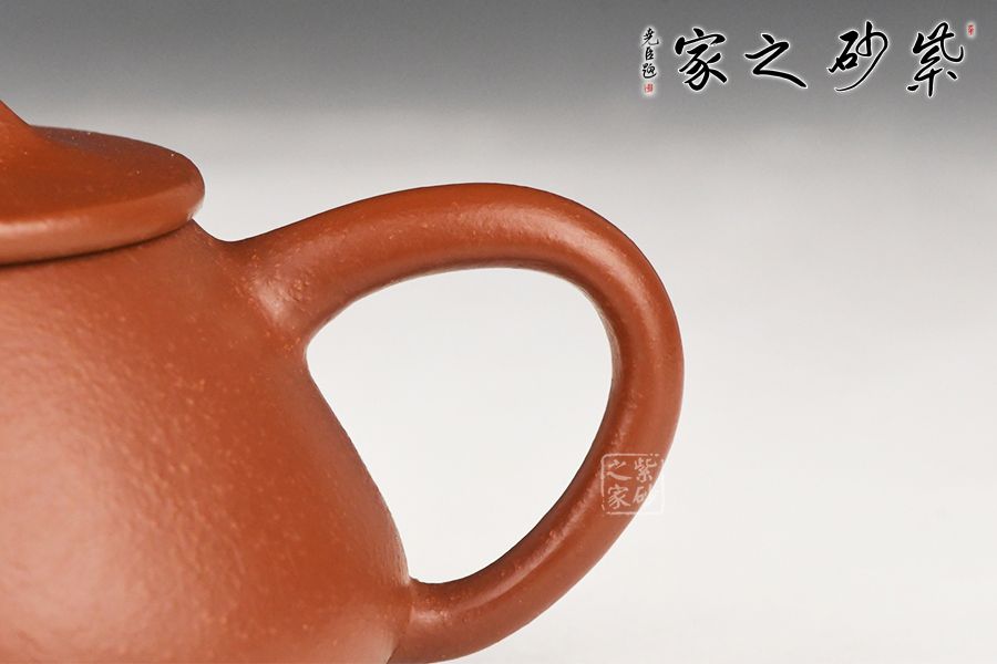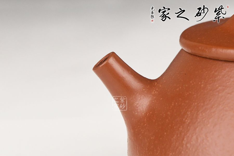 特点:质感绵密、紧实细緻,持之扎实沉重、红润豔丽,泥中极品,无以伦比;泥胚含少许原矿颗粒,冲淋热水后色变极大,呈红中带紫,养壶易现“包浆”之美。